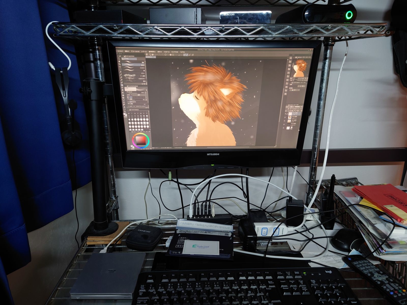 WorkspaceSoftware used: clipstudioScanner: hp psc 2150Graphic tablet: bambooPrinter: hp psc 2150On top of the desk: エロ原稿や同人誌 狼リング